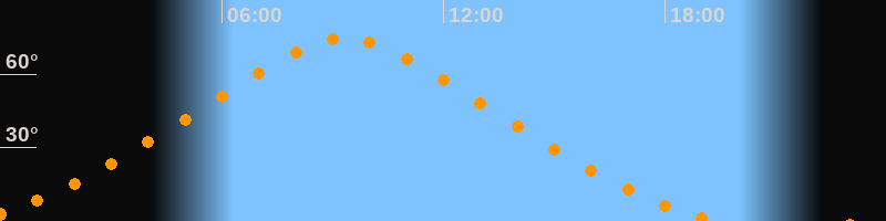 | Höchster Stand (Kulmination) | 09:20 Uhr (h = 74,5°) |