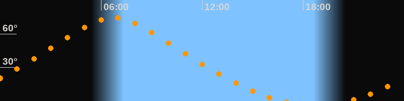 | Höchster Stand (Kulmination) | 06:44 Uhr (h = 74,5°) |