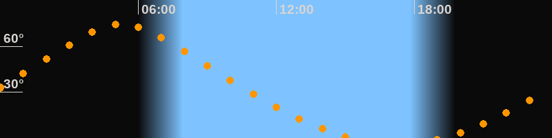 | Aufgang | 19:05 Uhr im Nordosten (αAz = 22,5°) |