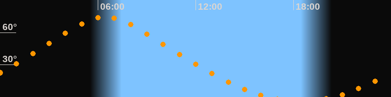 | Höchster Stand (Kulmination) | 06:28 Uhr (h = 74,5°) |