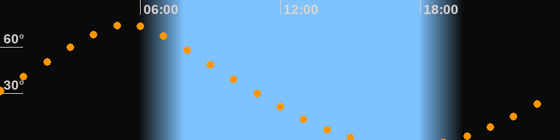 | Höchster Stand (Kulmination) | 05:25 Uhr (h = 74,5°) |