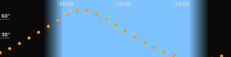 | Höchster Stand (Kulmination) | 08:34 Uhr (h = 74,5°) |