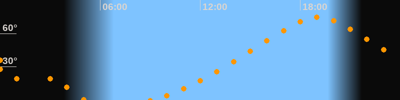 | Höchster Stand (Kulmination) | 19:04 Uhr (h = 74,5°) |