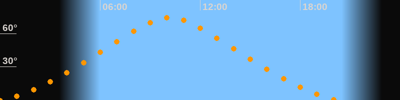 | Höchster Stand (Kulmination) | 10:10 Uhr (h = 74,5°) |