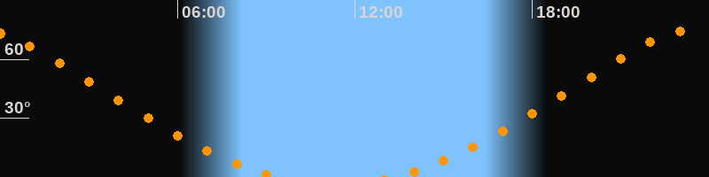| Aufgang | 13:13 Uhr im Nordosten (αAz = 22,5°) |