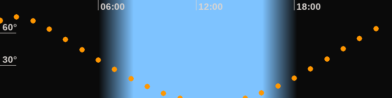 | Untergang | 11:06 Uhr im Norden (αAz = 337,5°) |