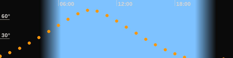 | Höchster Stand (Kulmination) | 09:21 Uhr (h = 74,5°) |