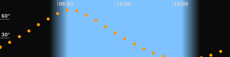 | Höchster Stand (Kulmination) | 07:20 Uhr (h = 74,5°) |