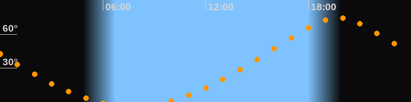 | Höchster Stand (Kulmination) | 19:43 Uhr (h = 74,5°) |