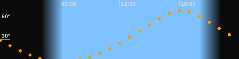 | Höchster Stand (Kulmination) | 18:13 Uhr (h = 74,5°) |
