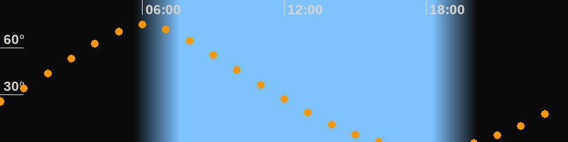 | Höchster Stand (Kulmination) | 06:06 Uhr (h = 74,5°) |