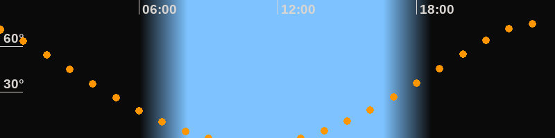 | Aufgang | 12:50 Uhr im Nordosten (αAz = 22,5°) |