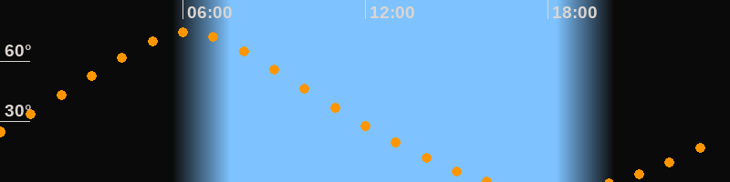 | Höchster Stand (Kulmination) | 06:11 Uhr (h = 74,5°) |