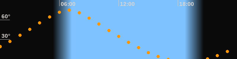 | Höchster Stand (Kulmination) | 06:54 Uhr (h = 74,5°) |