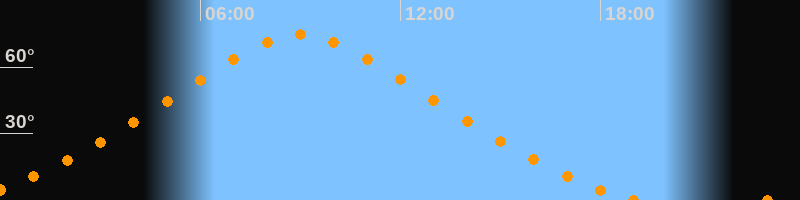| Höchster Stand (Kulmination) | 09:01 Uhr (h = 74,5°) |