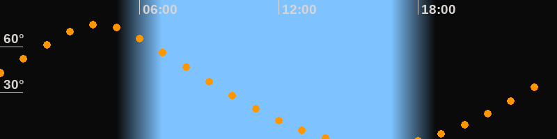 | Untergang | 14:20 Uhr im Norden (αAz = 337,5°) |