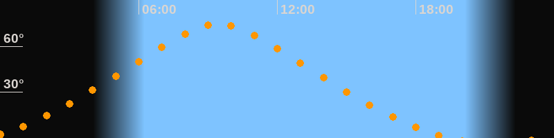 | Höchster Stand (Kulmination) | 09:26 Uhr (h = 74,5°) |