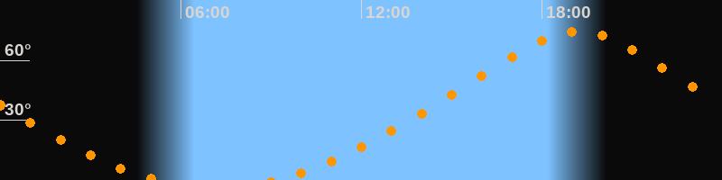 | Höchster Stand (Kulmination) | 19:12 Uhr (h = 74,5°) |