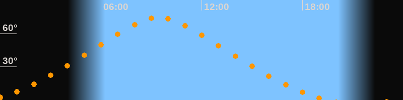 | Höchster Stand (Kulmination) | 09:27 Uhr (h = 74,5°) |