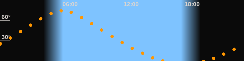 | Höchster Stand (Kulmination) | 06:06 Uhr (h = 74,5°) |