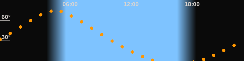 | Höchster Stand (Kulmination) | 05:23 Uhr (h = 74,5°) |