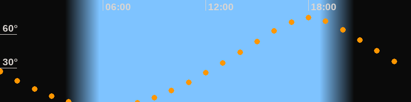 | Höchster Stand (Kulmination) | 18:03 Uhr (h = 74,5°) |