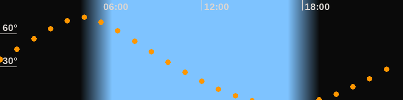 | Aufgang | 18:42 Uhr im Nordosten (αAz = 22,5°) |