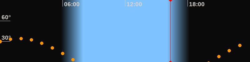 | Untergang | 07:26 Uhr im Westen (αAz = 262,9°) |