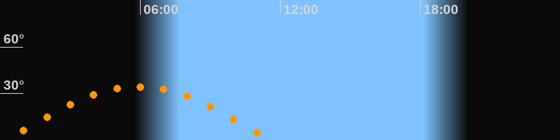| Höchster Stand (Kulmination) | 05:55 Uhr (h = 34,4°) |