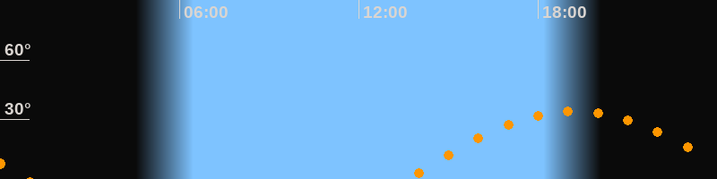 | Höchster Stand (Kulmination) | 19:13 Uhr (h = 34,4°) |