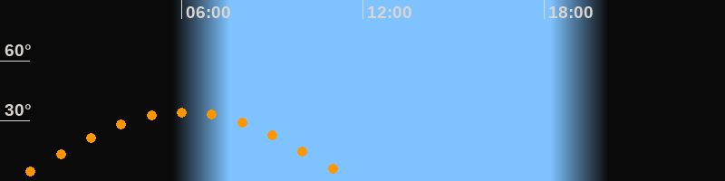 | Höchster Stand (Kulmination) | 06:04 Uhr (h = 34,4°) |