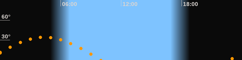 | Höchster Stand (Kulmination) | 04:23 Uhr (h = 34,4°) |