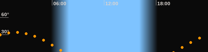 | Höchster Stand (Kulmination) | 01:45 Uhr (h = 34,4°) |