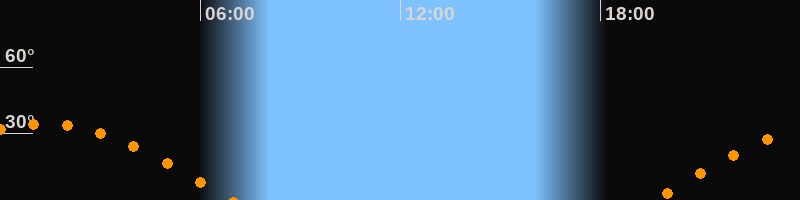 | Höchster Stand (Kulmination) | 01:18 Uhr (h = 34,4°) |