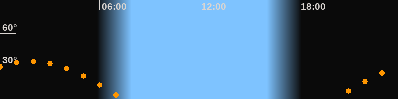 | Höchster Stand (Kulmination) | 01:50 Uhr (h = 34,4°) |