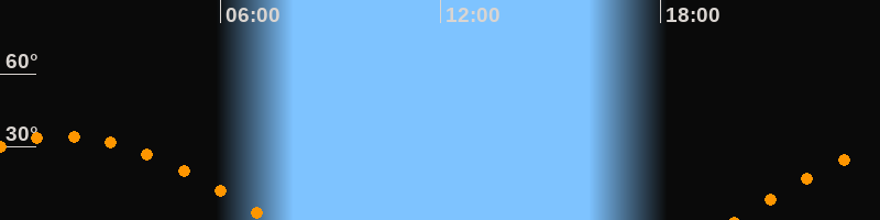 | Höchster Stand (Kulmination) | 01:43 Uhr (h = 34,4°) |