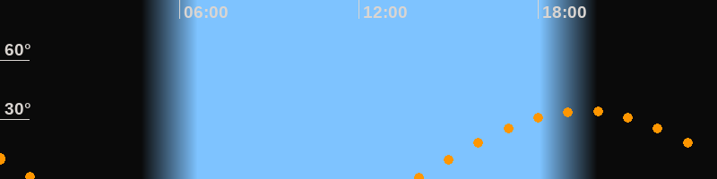 | Höchster Stand (Kulmination) | 19:30 Uhr (h = 34,4°) |