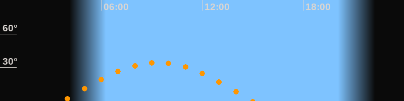 | Höchster Stand (Kulmination) | 09:21 Uhr (h = 34,4°) |