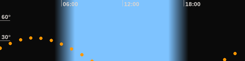 | Höchster Stand (Kulmination) | 03:25 Uhr (h = 34,4°) |