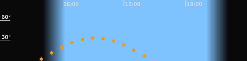 | Höchster Stand (Kulmination) | 09:14 Uhr (h = 34,4°) |
