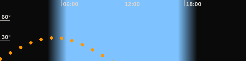 | Untergang | 10:55 Uhr im Westen (αAz = 262,9°) |