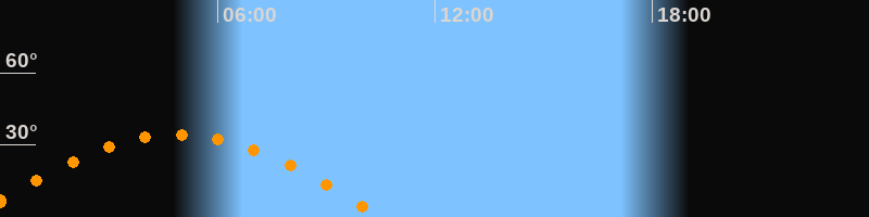 | Untergang | 10:31 Uhr im Westen (αAz = 262,9°) |