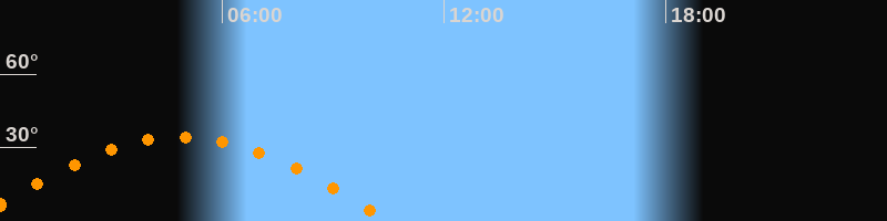 | Untergang | 10:32 Uhr im Westen (αAz = 262,9°) |