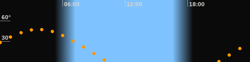| Untergang | 10:22 Uhr im Westen (αAz = 284°) |