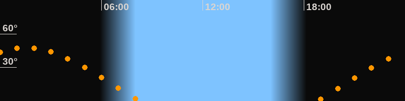 | Aufgang | 18:45 Uhr im Osten (αAz = 76°) |