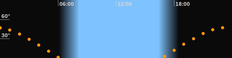 | Aufgang | 16:40 Uhr im Osten (αAz = 76°) |