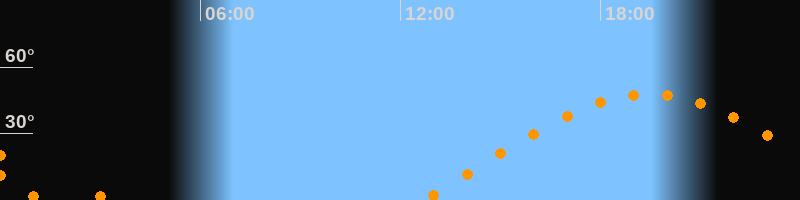 | Aufgang | 12:43 Uhr im Osten (αAz = 76°) |