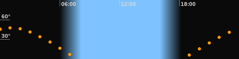 | Aufgang | 18:17 Uhr im Osten (αAz = 76°) |