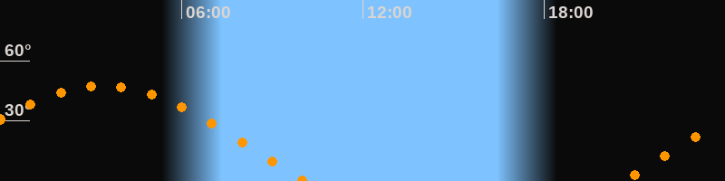 | Höchster Stand (Kulmination) | 03:23 Uhr (h = 47,6°) |