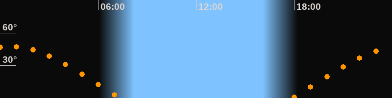 | Untergang | 07:23 Uhr im Westen (αAz = 284°) |
